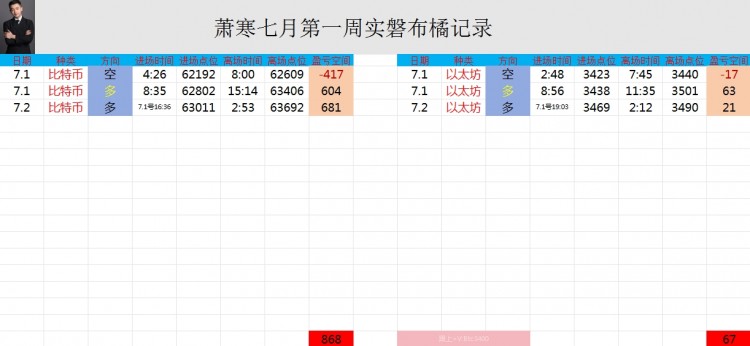 又是在深夜搞事情,午夜大饼再次走出一个∧形走势,可能有的人一觉睡醒一看点位还是那个点位,仓位或许就已经不在了;临近午夜,大饼逐步给到拉升,高点再次去到63800附近,但还是没有完成对64000点破位,冲高后回测下来的也很快,目前再次回到午夜之前的起涨点附近;以太午夜时分虽然同样给到一定程度的反弹,但涨势确实不显,相比之下后续的回测下跌力度更加强烈,早间插针低点去到了3420。昨日早些时候布局的大饼和以太多丹,在午夜迎来上涨之后,见冲高乏力也是直接止盈离场,拿下了681➕21点空间;同样午夜时分也是有屡次提示可以做哆,睡了的就不提了,没睡的又有几个听进去了呢?深夜不休息也不敢布局,那又是何必,得不偿失啊。