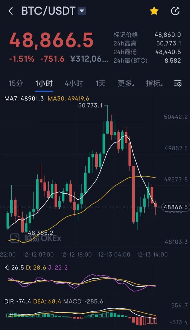 依据数字货币财产价钱追踪网址CoinGecko的数据信息,比特币价钱过去24钟头内下跌了0.9%。周四,比特币价钱下跌2.81%,至47,838美金。