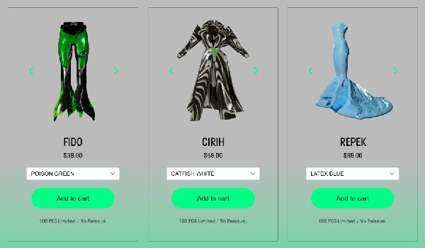 2019年5月,全世界第一款区块链技术虚拟服装 “Iridescence”问世,并最后以9500美金的价钱卖出。它根据2D服装款式手机软件和3D制图软件,还有强劲的3D渲染专用工具,来“生产制造”十分逼真的服装。